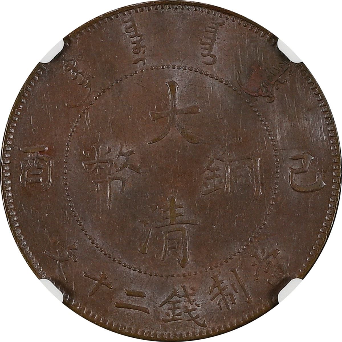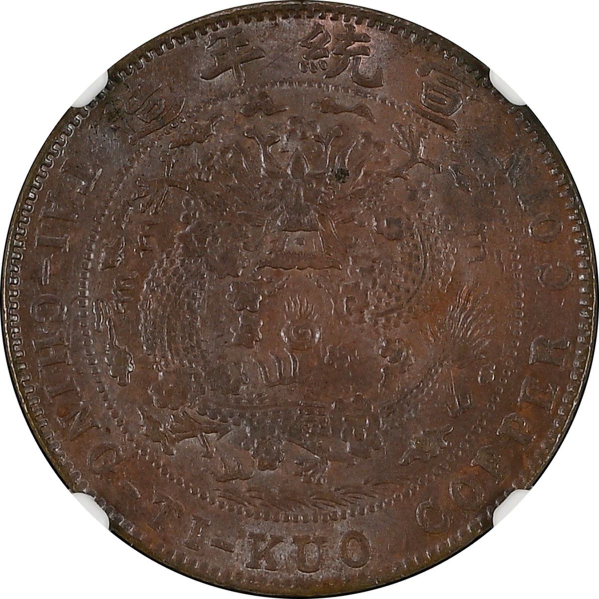 China: Empire, 20 Cash, 1909, NGC Graded UNC Details (ENVIRONMENTAL DAMAGE).