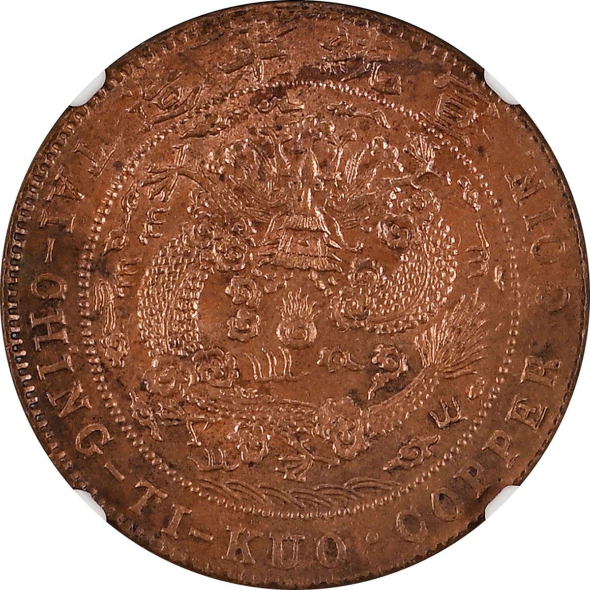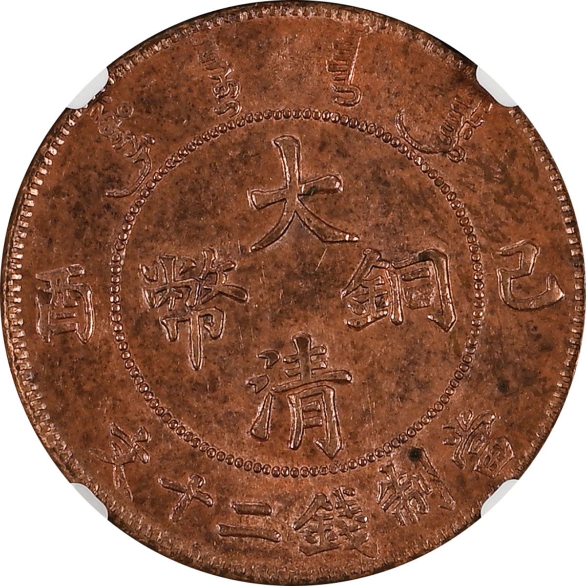 China: Empire, 20 Cash, 1909, NGC Graded UNC Details (CLEANED).