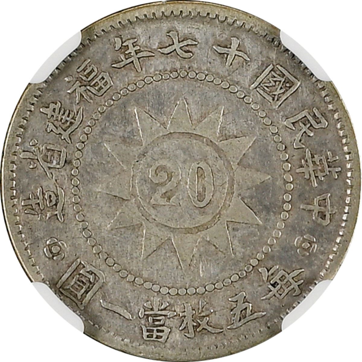 China: Fukien Province, 20 Cash, Year 17 (1928), L&M-850, NGC Graded VF DETAILS - CLEANED.