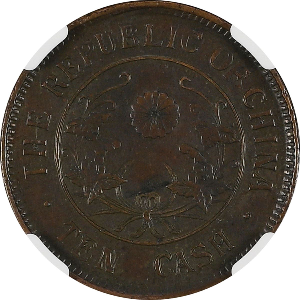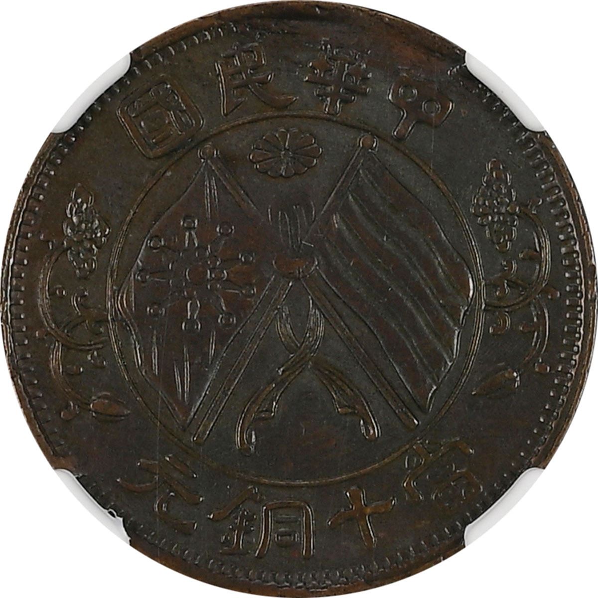 China: Hunan Province, 10 Cash, 1920, Copper, Y-305, Chrysanthemum, "LI SCRIPT-GRAPES", NGC Graded A