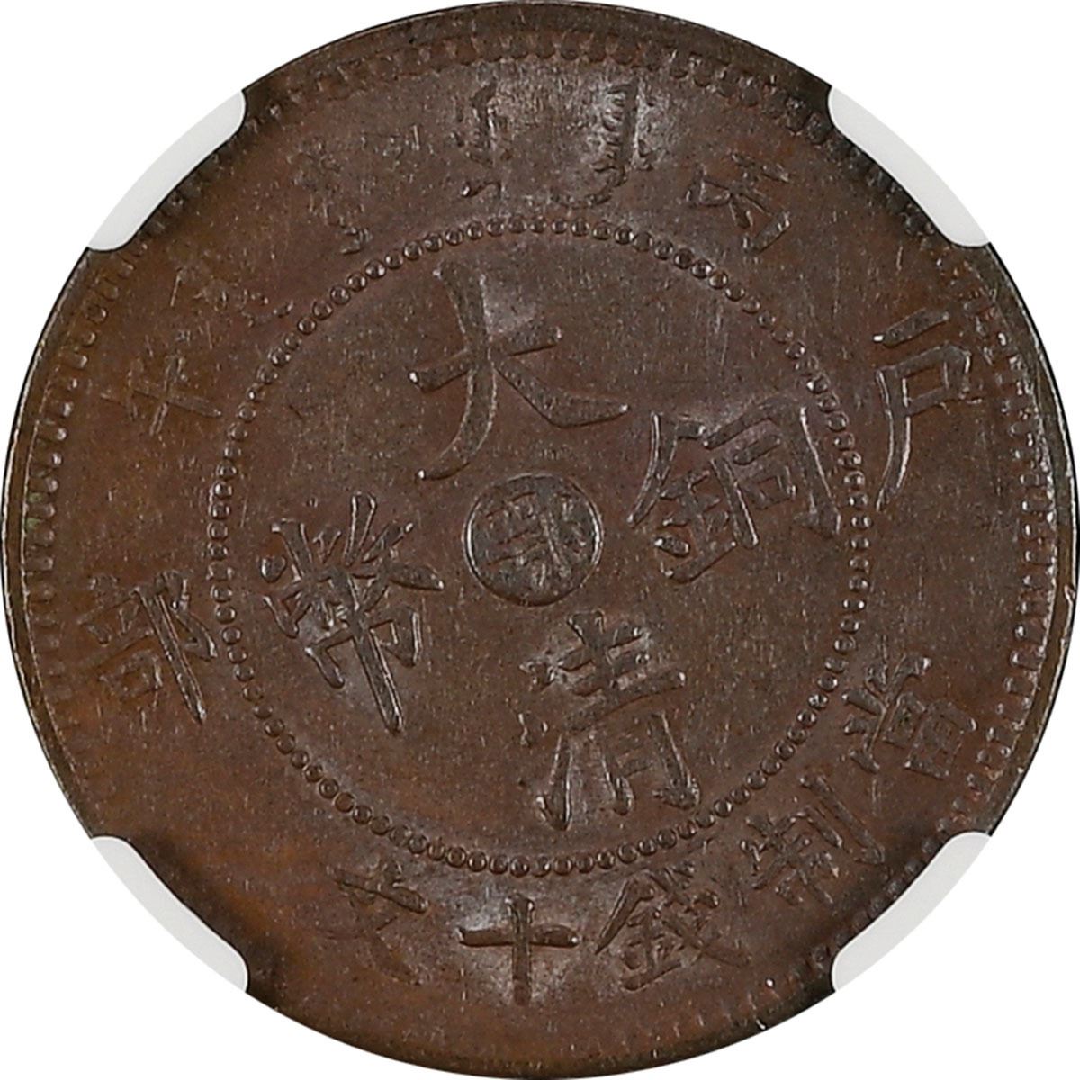 China: Hupeh Province, 10 Cash, 1906, NGC Graded AU 55 BN.