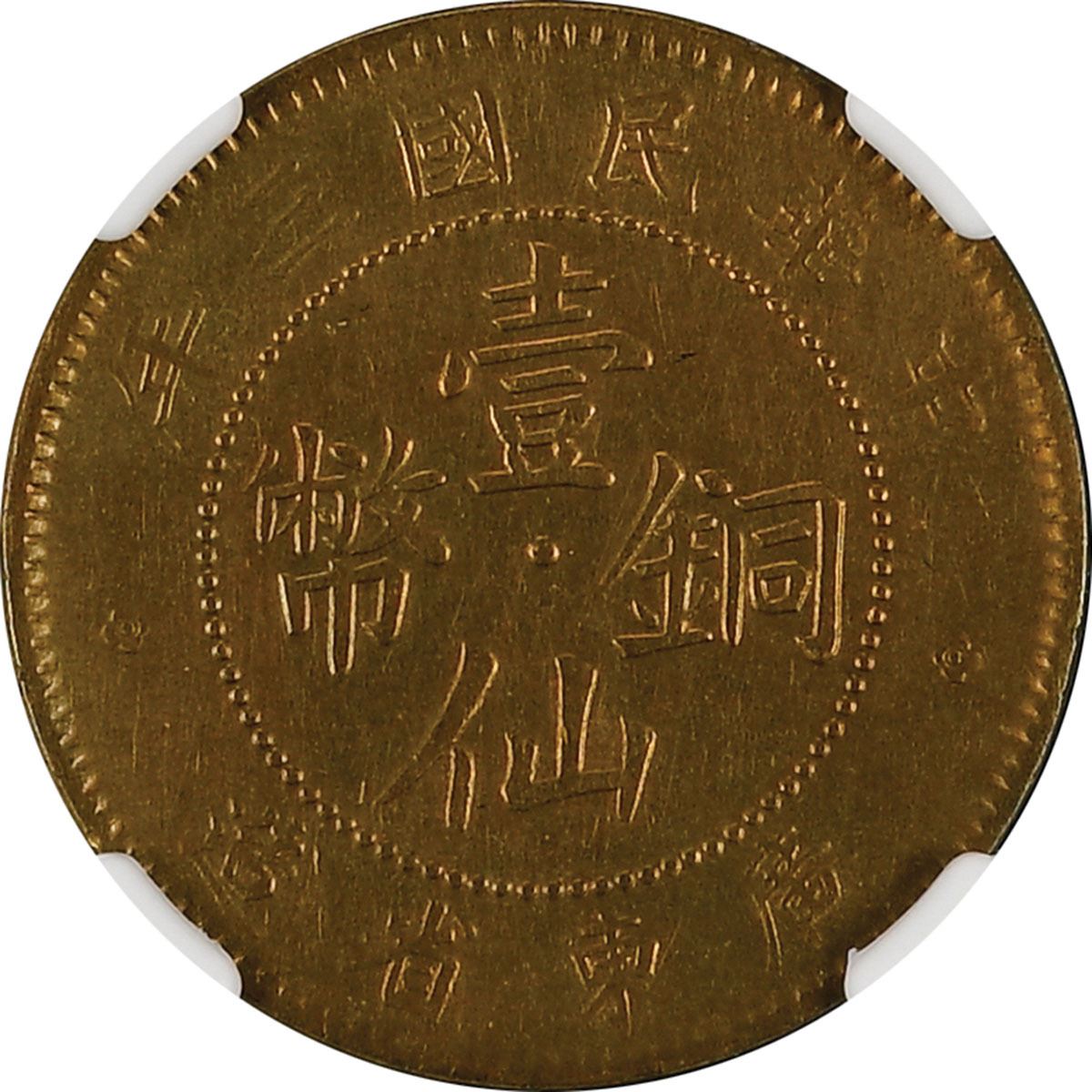 China: Kwangtung Province, 1 Cent, Year 3 (1914), NGC Graded UNC DETAILS - CLEANED.