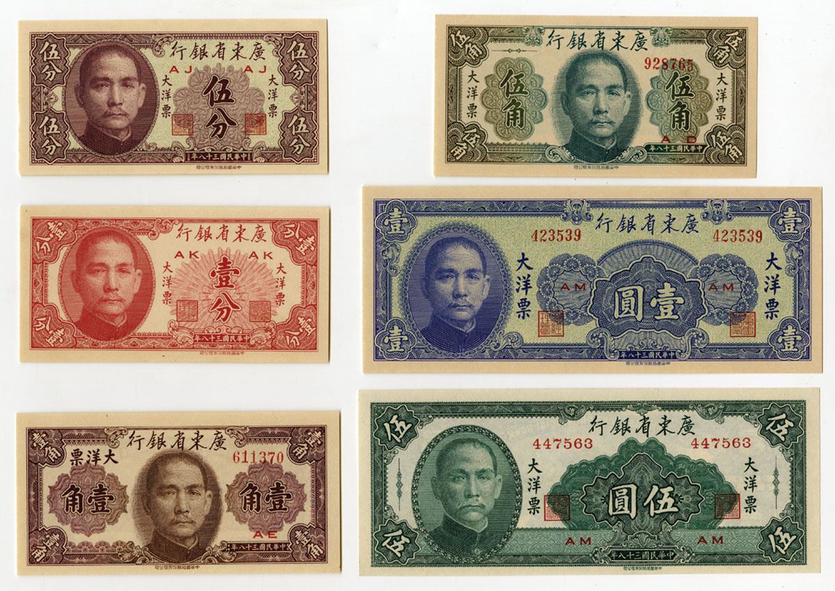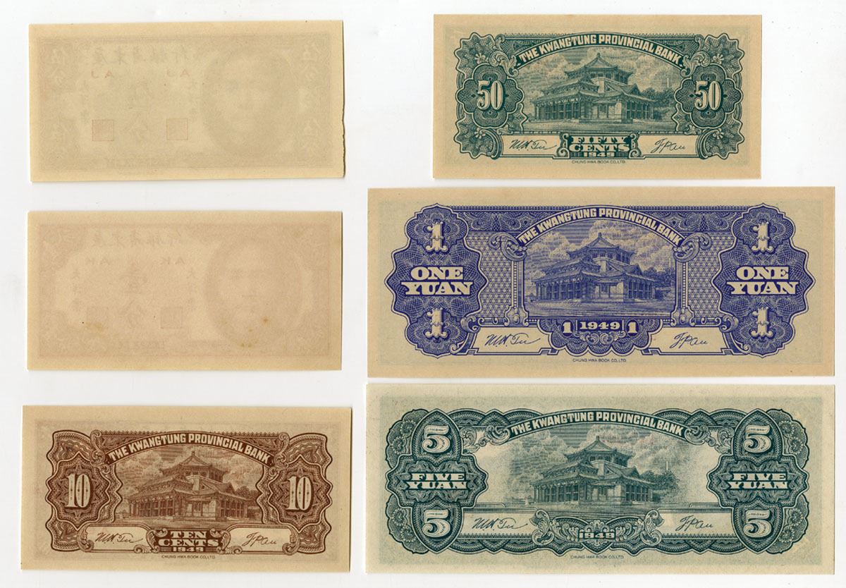 China, 1949. Lot of 6 Issued Banknotes, Includes: 1 Cent, P-S2452; 5 Cents, P-S2453; 10 Cents, P-S2454; 50 Cents, P-S2455; 1 Yuan, P-S2456; 5 Yuan, P-S2457. Notes range from AU to UNC condition. (6).
