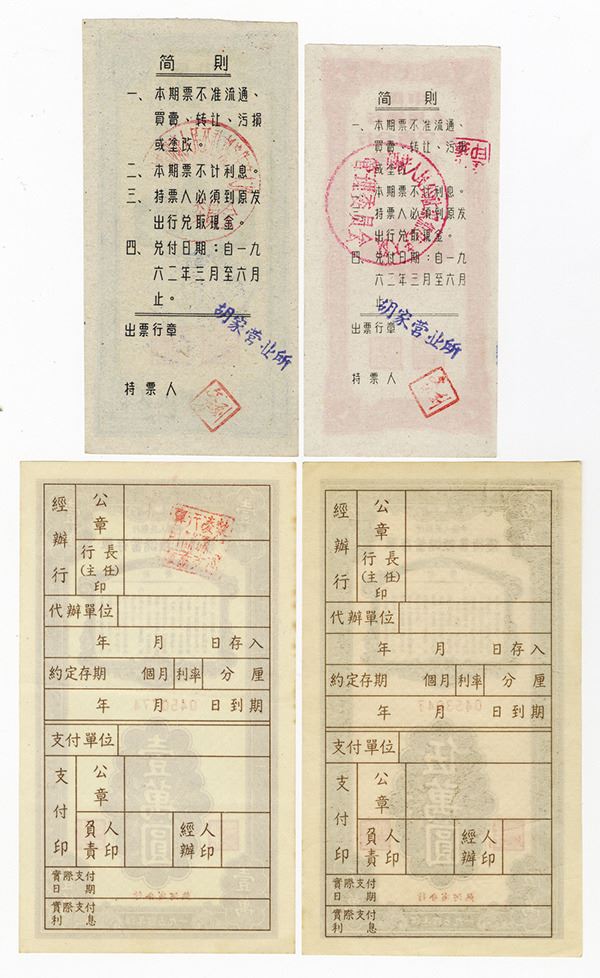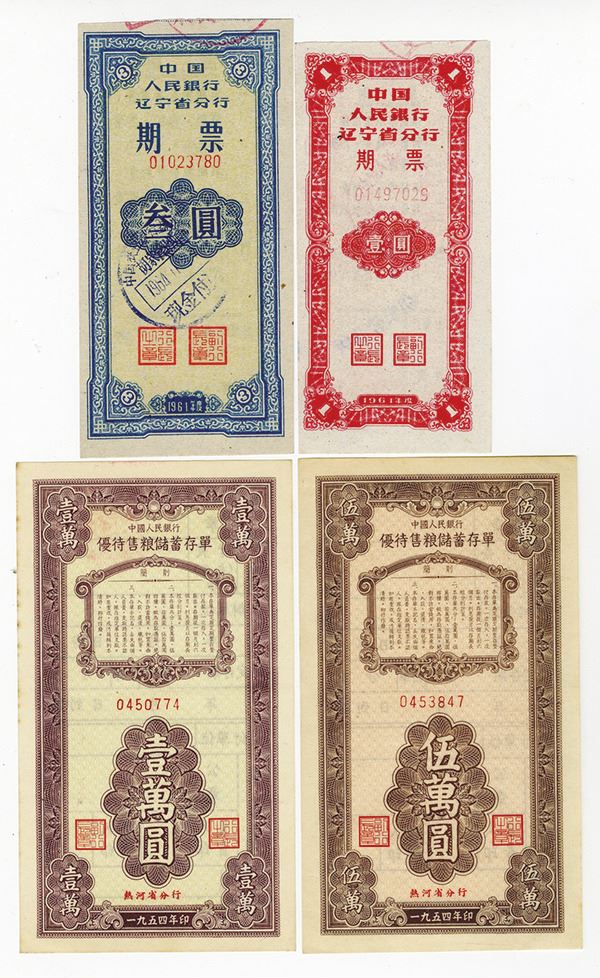 China.. Lot of 4 tickets or scrip notes, VF to Uncirculated.