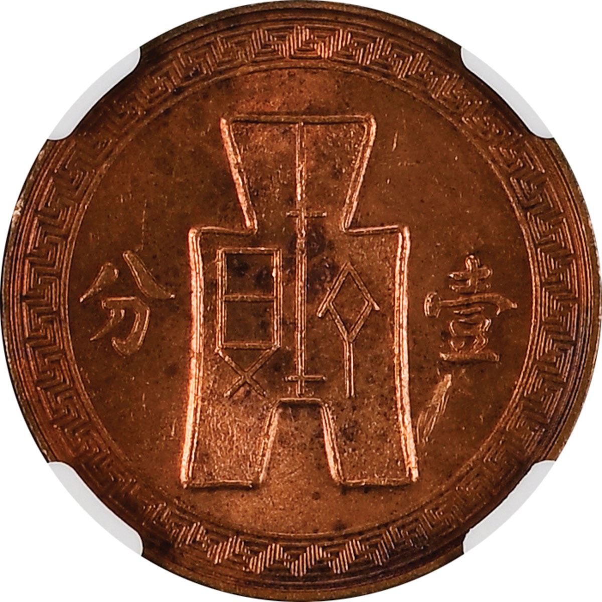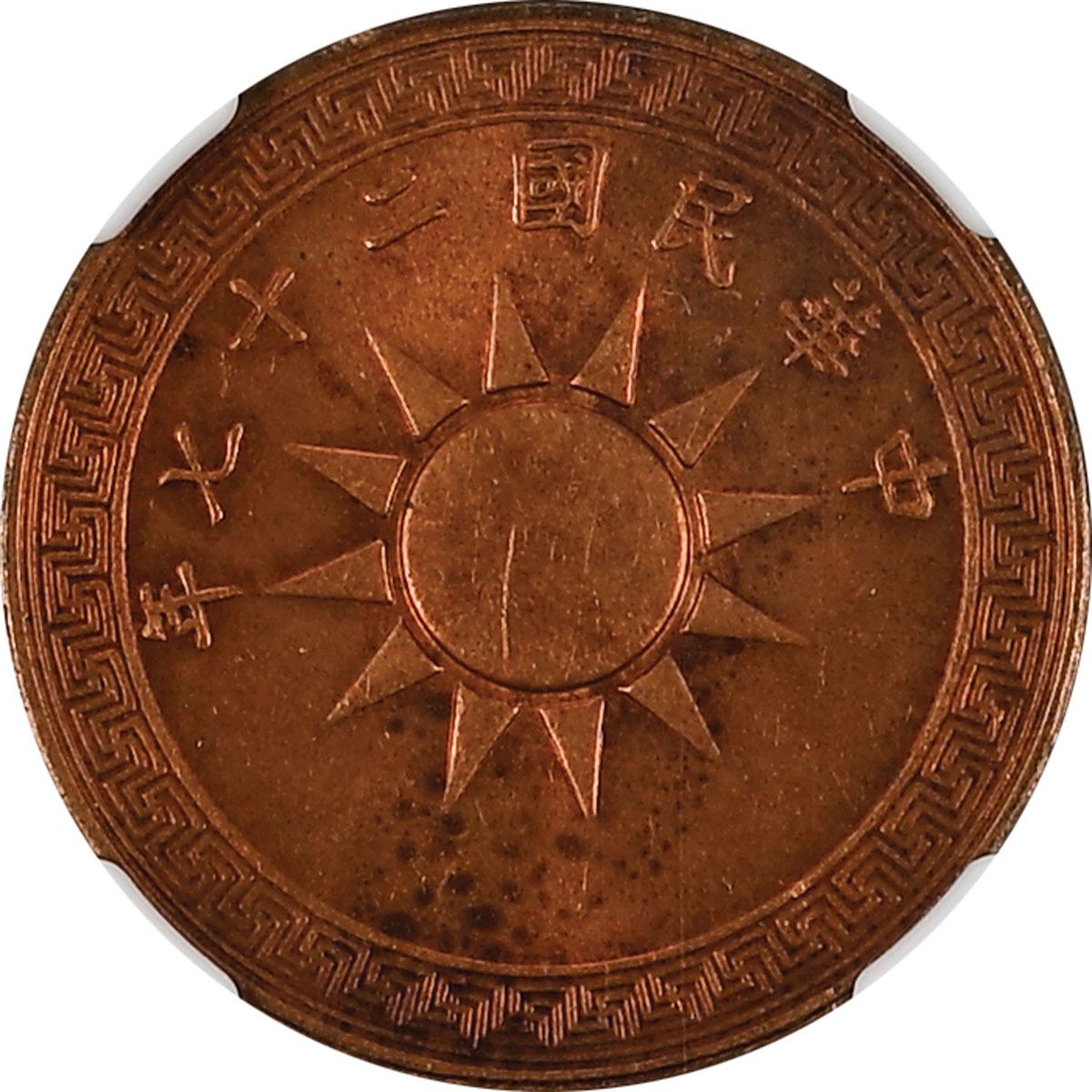 China: Republic, Cent, YR27 (1938), NGC Graded UNC Details (ALTERED COLOR).