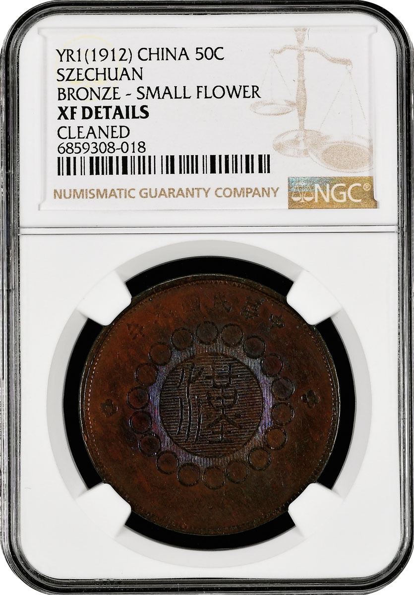 China: Szechuan Province, Year 1 (1912), Bronze - Large Flower, NGC Graded XF DETAILS - CLEANED.