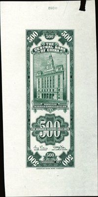 1930; 1947. P-325; 327; 331; 335. 1; 10; 250; 500 CGU's 4 different Trial Color Back proofs on india. 1) P-325, red. Issued color was brown. 2) P-327, blue. Issued color was olive-grey. 3) P-331, black. Issued color was brown. 4) P-335, green. Issued color was blue. All 4 notes appear AU-Unc., but have small pieces cut from them. Rare. ABNC.