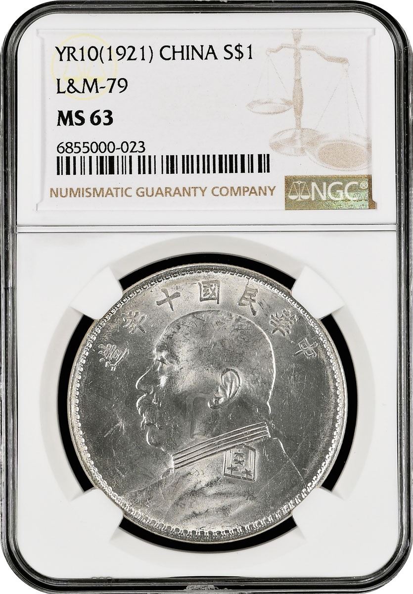 China: Year 10 (1921), 1 Dollar, NGC Graded MS 63. (L&M-79),