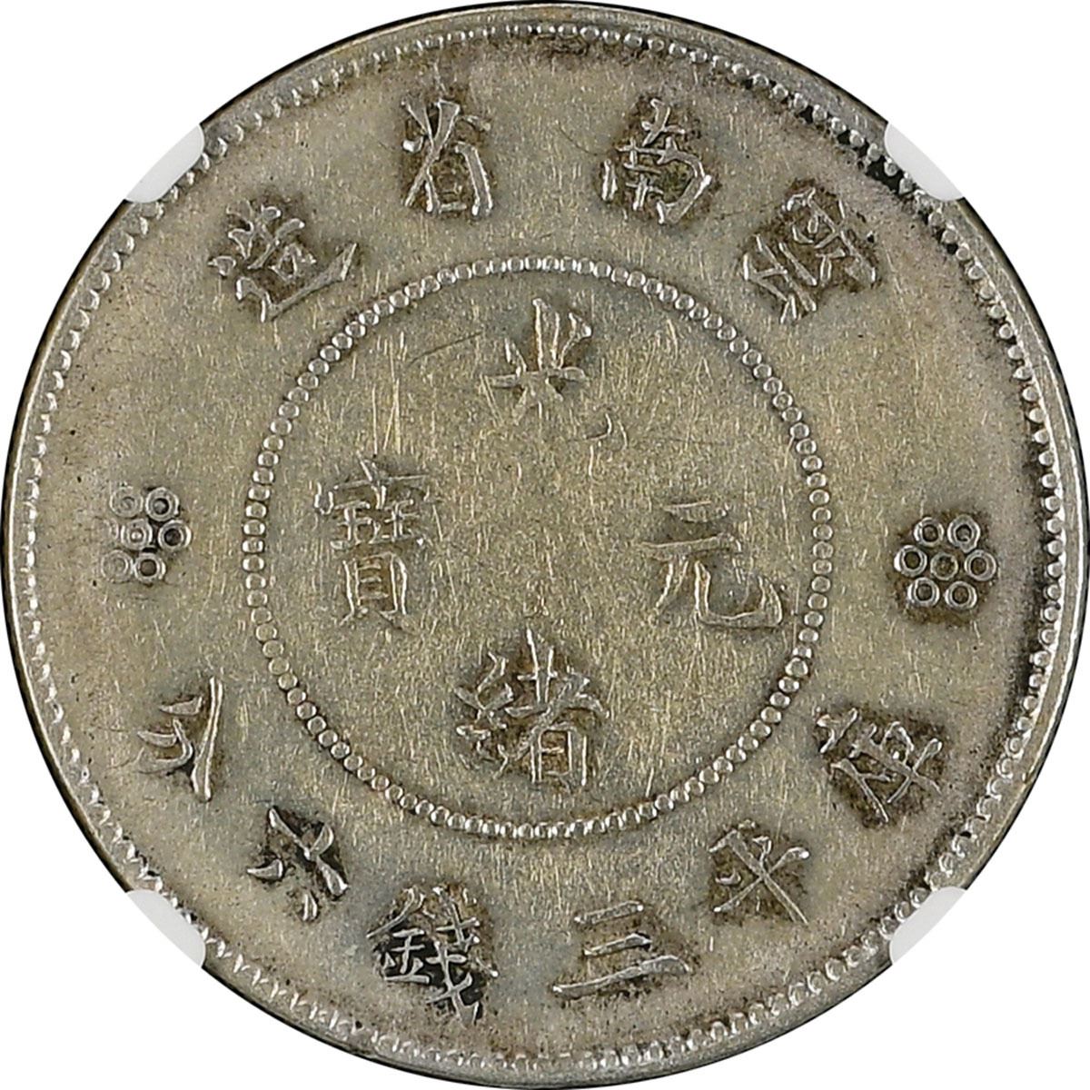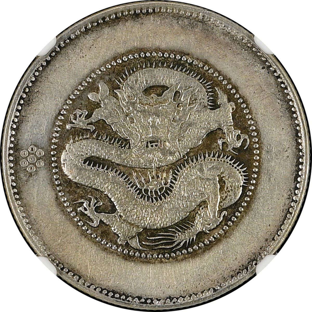 China: Yunnan Province, 3 Mace 6 Candareens (50 Cents), (1911), L&M-422, Silver, NGC Graded XF DETAILS - CLEANED. The coin's surface is a tapestry of silvery hues, accented by a delicate sheen that whispers of its previous encounters with polish. In spite of its cleaned past, the coin retains an allure, with the dragon motif crisply rising against a backdrop of subtle luster that captures the play of light with a quiet dignity.