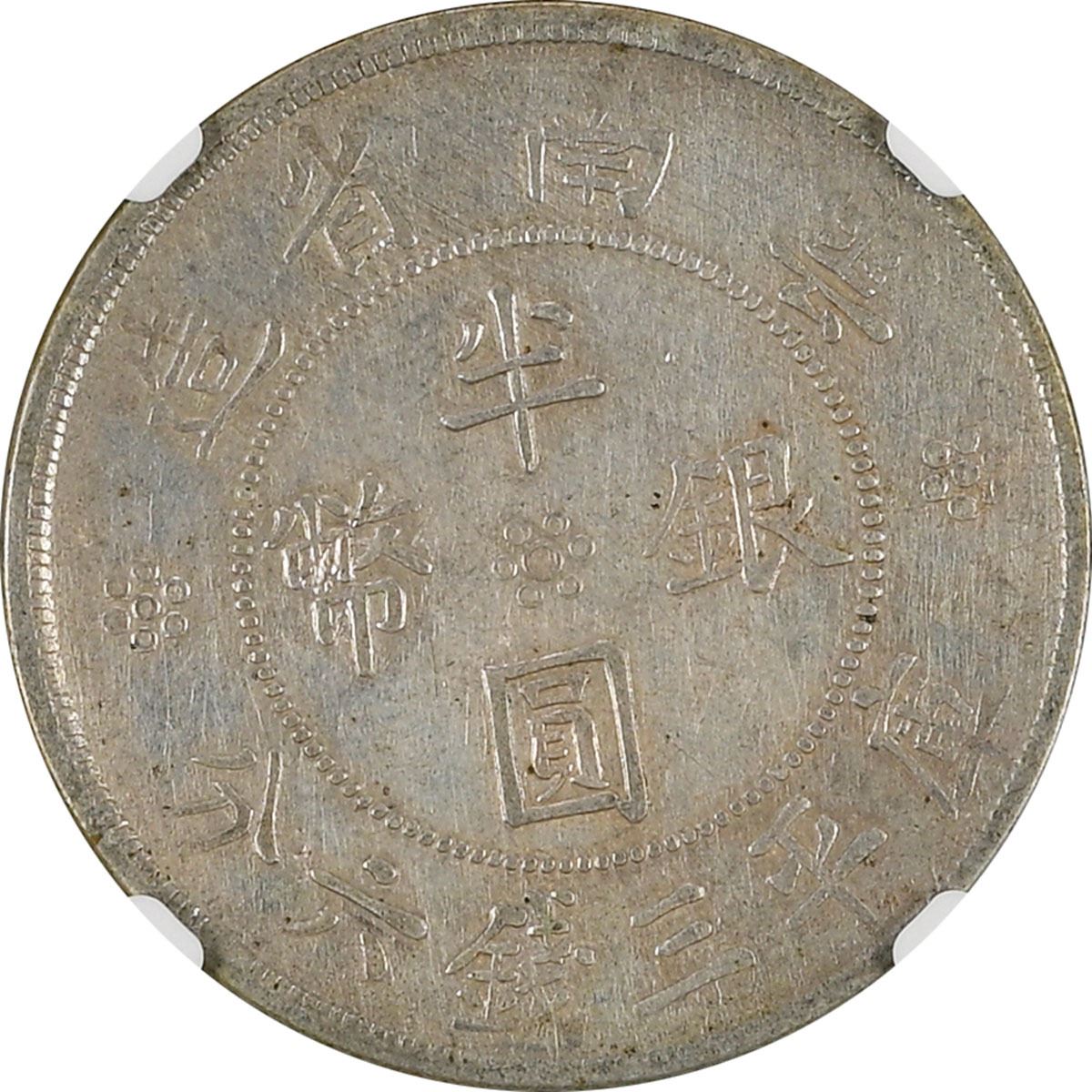 China: Yunnan Province, 3 Mace 6 Candareens (50 Cents), Year 21 (1932), L&M-430, NGC Graded UNC DETAILS - CLEANED. The coin exhibits a strong strike revealing the geometric precision of the central design and the crispness of the surrounding inscriptions. On the reverse, each character is sharply delineated.