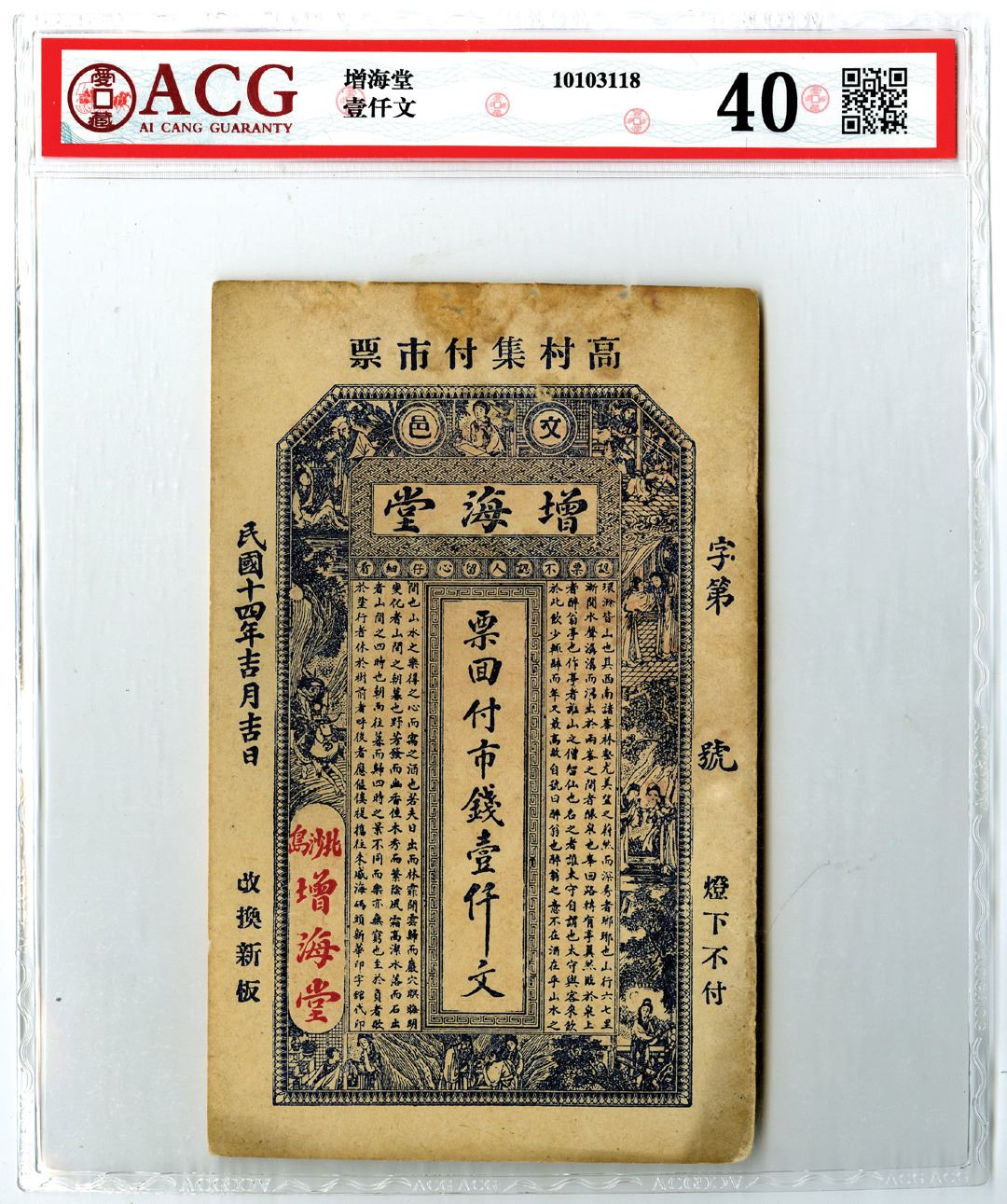 China, Zeng Hai Tang. 1925. Shandong 1000 Cash Beyer Number Zeng 0040-5276 Bill of Exchange, Circulated with several internal splits especially visible on the top margin. ACG graded 40.