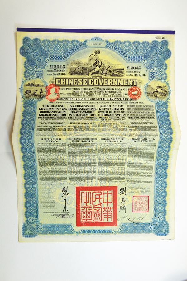 Issued by the Deutsch-Asiatische Bank. 100 Pounds. English, German, French, Russian texts. With coupons. 1 piece.