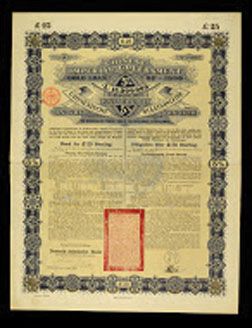 China, 25 Pounds, 1896, 5% Gold Loan, Issued and punch cancelled, Deutsch-Asiatische Bank - Agent. VF condition.