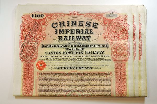 Chinese Imperial Railway 5% Gold Loan. Canton-Kowloon Railway. 1907. British and Chinese Corp. Ltd.