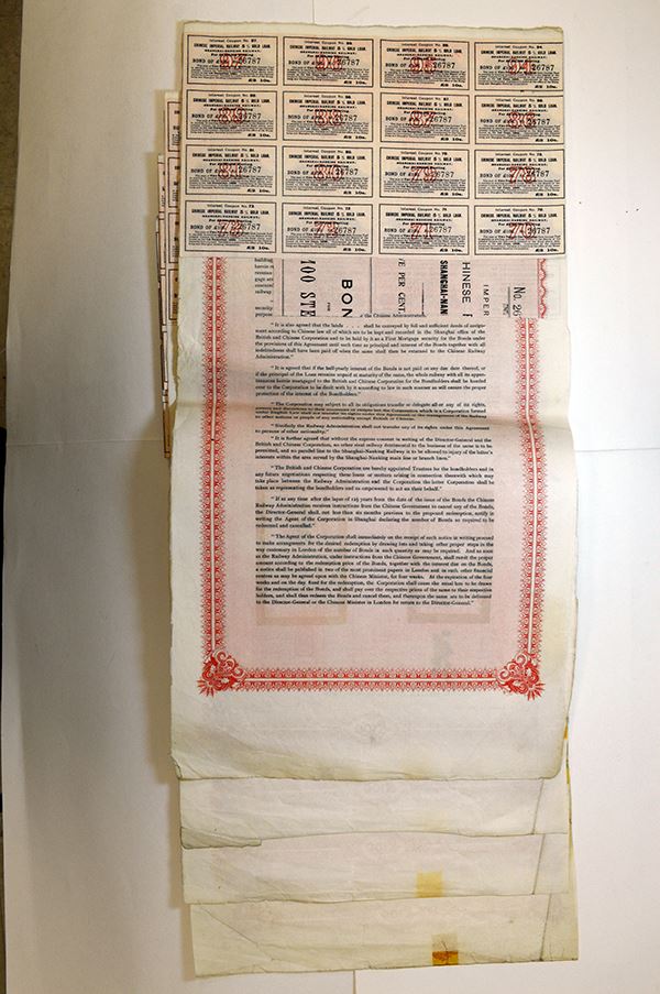 Issued by the British and Chinese Corp. Ltd. 100 Pounds. English text. With Coupons. 4 pieces.