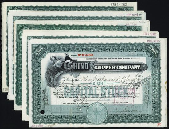 New Mexico, 1910's, Issued and Cancelled Stock, Black on green border and underprint, Stock certificates held together by medal tack and have allegorical woman top left, POC's, VF condition, ABNC.