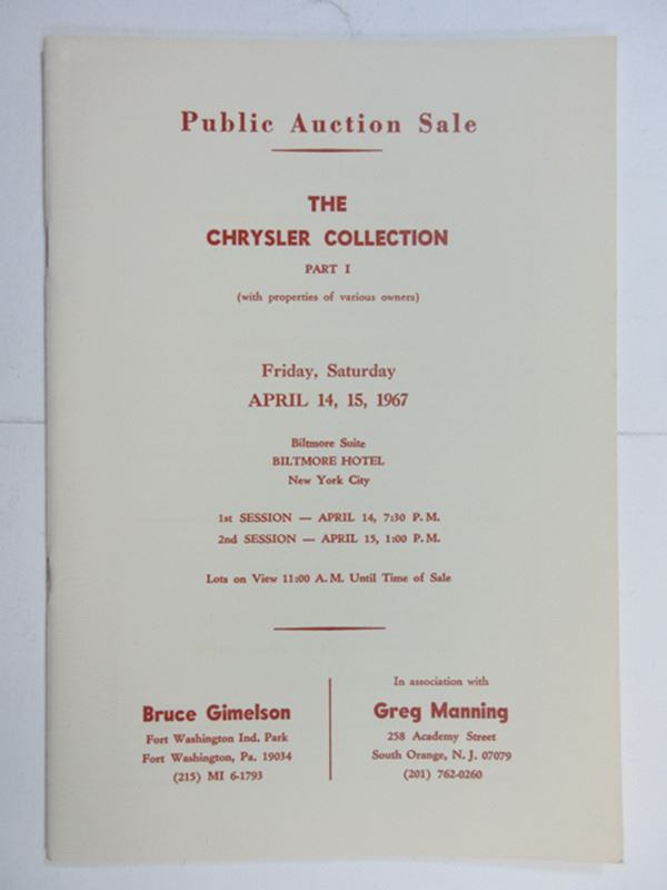 Catalogue from the 1967 Chrysler Collection Public located in New York City. Catalogue is in VF-XF condition.