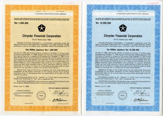 Michigan, 1990. Pair of Specimen Bonds: 1,000,000 Yen & 10,000,000 Yen, Specimen, 5 1/2% Bonds, Both are Uncirculated condition, SCBNC. (2).