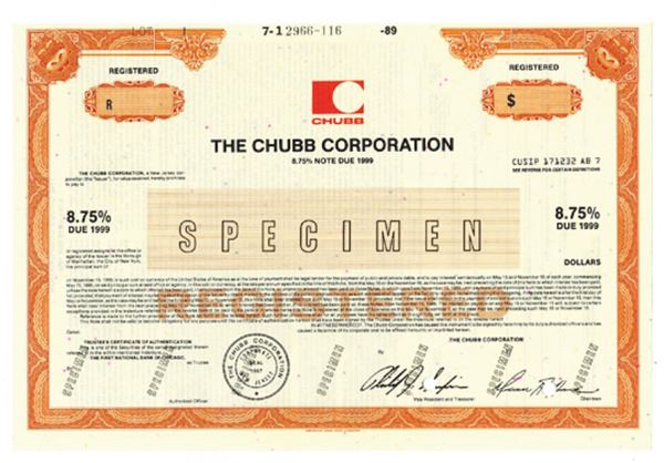 New Jersey. $-Odd Specimen 8.75% Registered Bond, Black print on orange border and under tint in horizontal format, Company title at top, Specimen overprints and POC's, VF-XF condition, ABNC.