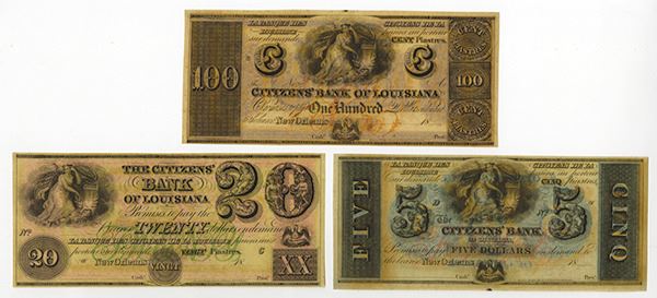 New Orleans, Louisiana, Lot of 3 remainder notes, Includes $5, $20 and $100 banknotes, all are in choice to Gem Uncirculated condition, RWH&E, N.O.