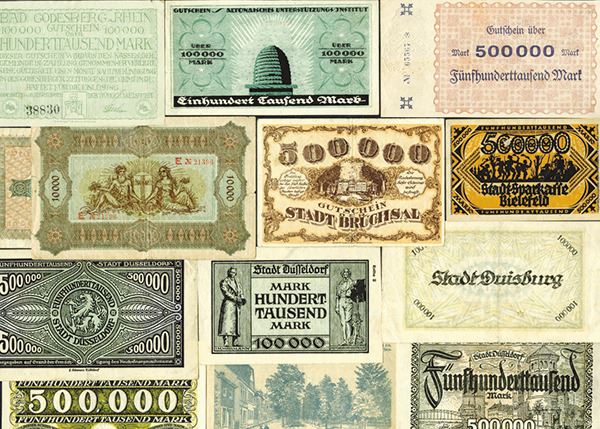 Germany - Notgeld. Issues from Dusseldorf, Haan, Karlsruhe, Coblenz, Bruchsal and others. Slight musty odor to group. Very Good to Fine. 28 pieces.