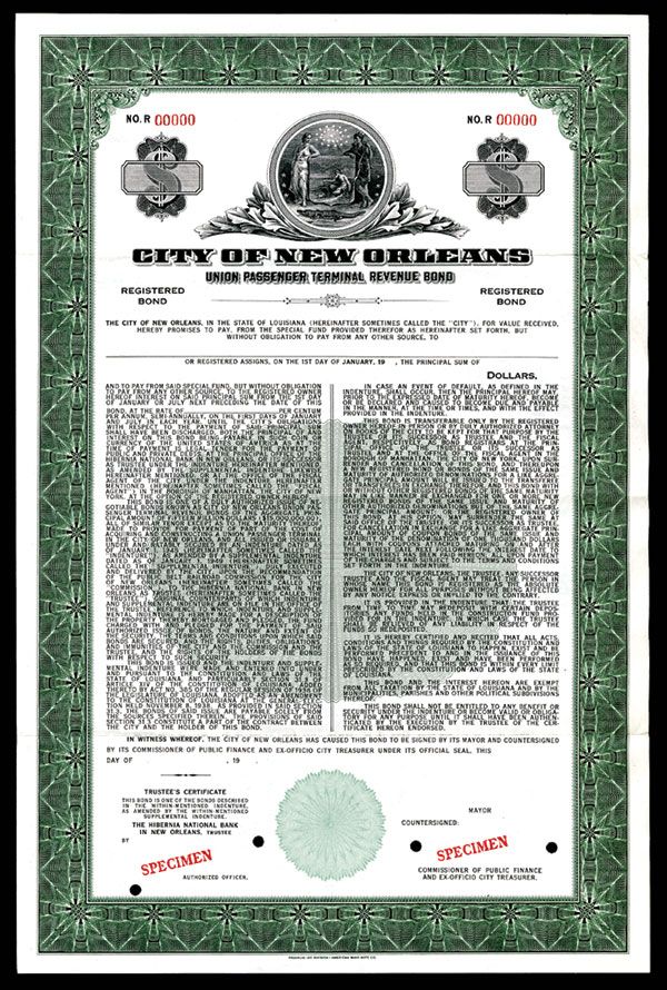 New Orleans, LA. $-Odd, Registered Odd% Bond, Green border, FLD-ABNC. XF, Unlisted railroad in Cox.