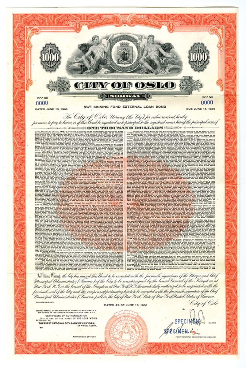 Norway. $1000 Coupon Bond Specimen. ABNC. Extremely Fine.