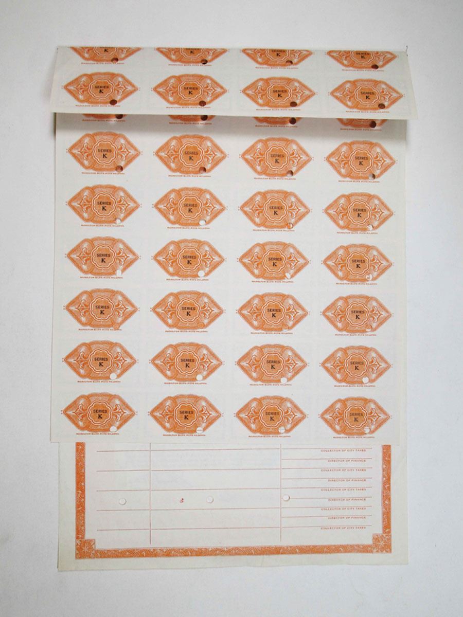 Richmond, Virginia, 1953. $1000 Specimen 1 3/4% Serie K Serial Public Improvement Coupon Bond, Black print on orange border and underprint with seal of Virginia at top center, Specimen overprints and POCs, XF to AU condition, HBNC.