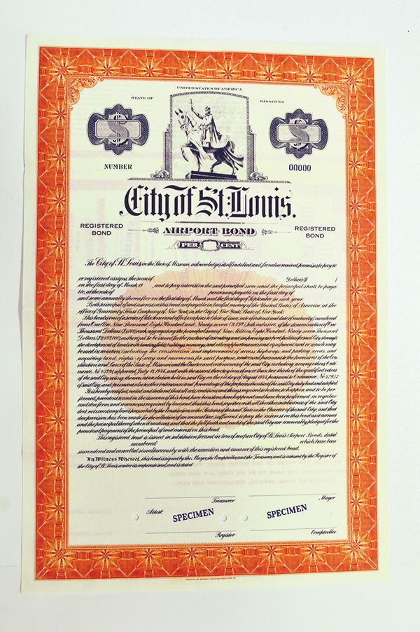 Missouri, St. Louis. $-odd Registered Bond Specimen. ABNC. Extremely Fine.