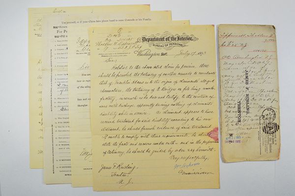 NJ. Civil War Pension Application for Thaddeus W. Sipponcott, 23rd NJ regiment. In US Government envelope with notations from 1892 thru 1906. He served under Hooker at Fredericksburg. Along with 1897 letter.