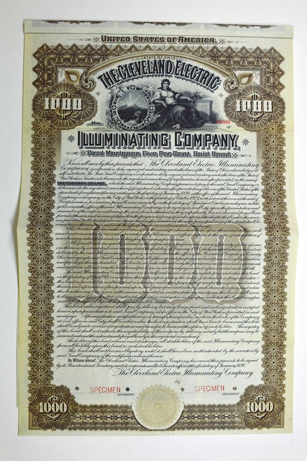Ohio. $1000 Gold Coupon Bond Specimen. Franklin-Lee BNC. Extremely Fine.