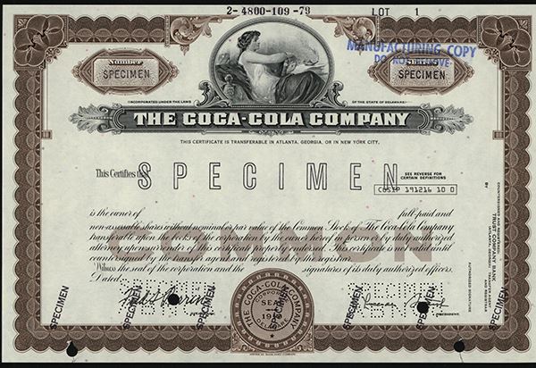Georgia, Specimen Stock, Odd Shares, Black on brown border and underprint, Reclined allegorical woman top center, POC's and SPECIMEN overprints, VF-XF condition, ABNC.