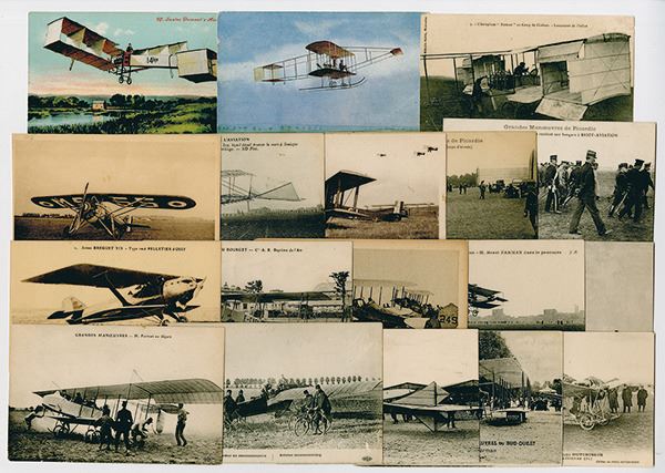 Group of 18 original French postcards related to early aircraft from World War I. Featured aircraft include the Farman MF.11, which was used as a reconnaissance and light bomber during the Great War, as well as the F.60 Goliath which was instrumental in the creation of airlines and commercial routes in Europe following the war. The lot also includes postcards of scenes and figures, such as Captain Ferdinand Ferber, who was a French Army officer who played an important role in the development of aviation. All are in VF condition and have never been mailed.
