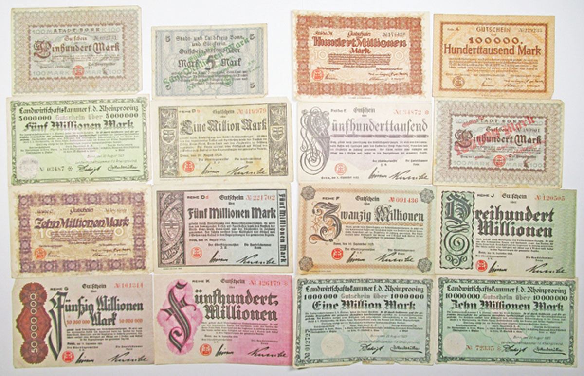 Cologne Bonn, Germany. 1922-23. Collection of 16 issued large format Notgeld Banknotes. VF to Uncirculated condition. (16). Sold "AS IS" no returns accepted.
