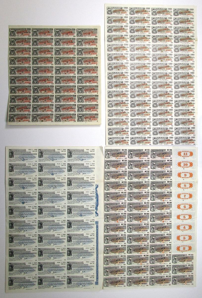 Colombia, 1919-78. Lot of 4 Specimen Bonds, Includes: Republica de Colombia 5 Pesos Coupon Bond, 1919; Department of Cundinamarca $1000 Coupon Bond, 1928; Republica de Colombia 500 Pesos Coupon Bond, 1942; Republic of Colombia $1000 Coupon Bond, 1973. All have Specimen overprints, POCs, and are in VF to XF+ condition. ABNC. (4). Sold "AS IS" no returns accepted.