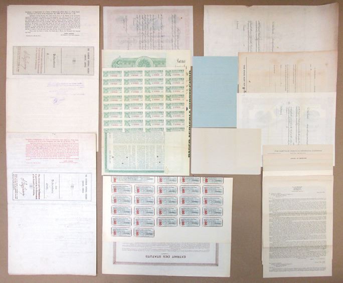 Colombia, 1888-1929. Lot of 20 Stocks, Bonds, and Correspondence, Includes: Certigue Mining & Dredging Co. Stock Certificate & Detailed Correspondence Group; Colombia Emerald Development Corp.; Banco Agricola Hipotecario; Chemins de Fer en Colombia; Colombia Mining Co.; Colombian National Railway Co., and Colombia Syndicate Proof Stock. Documents range from Fine to AU condition. (20). Sold "AS IS" no returns accepted.