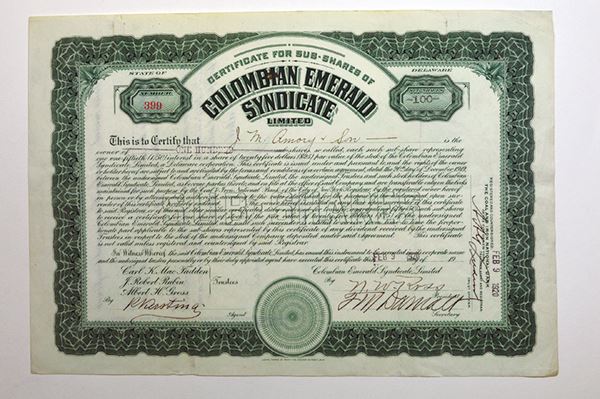 Delaware. 100 Sub-Shares Stock Certificate. I/U. Very Fine.