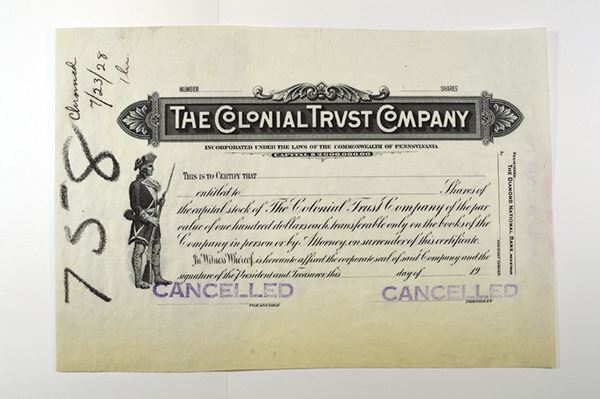 Pennsylvania. -Odd Shrs Stock Certificate Black Plate Specimen. Reference for chrome plating shop. Proof. Uniface. Very Fine +