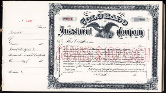 New York, 188x, Unissued 209 bound stocks, Black ornate border, Bald Eagle top center grasping at American Shield, VF-XF condition, W.E. Badeau.