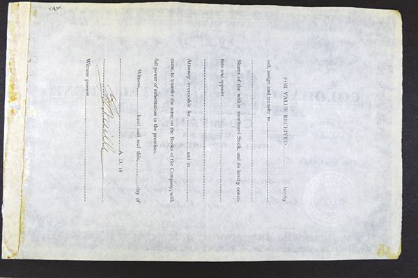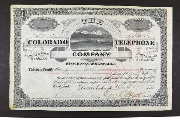 CO. 25 Shrs Stock Certificate. Issued, Cancelled. Slight paper tone at the ends. VF+