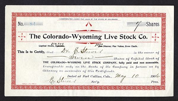 CO. 7 Shrs Stock Certificate. Issued. Uncancelled. Typeset. VF+