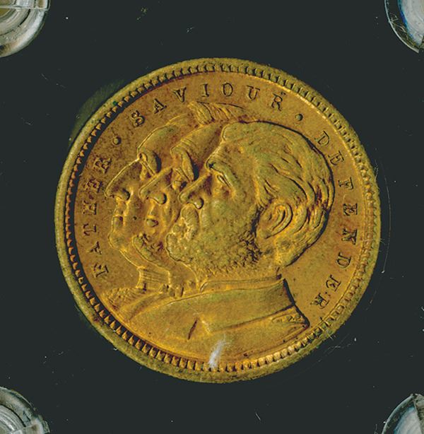 Chicago, IL. Back has text "Father - Savior - Defender" over portraits. 25mm, Red-Brown Uncirculated.