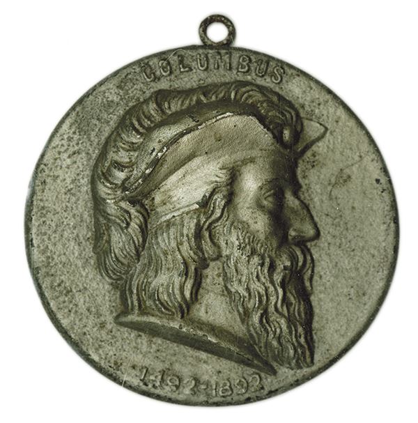 Bearded profile right. High relief cast copyright 1892 by G.P. Kato. 107mm, grey paint, loop as made.