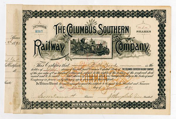 Georgia. 1 Shares, stock, train r-l at arched depot, '18--', $100 par, VF, by Kli, common.