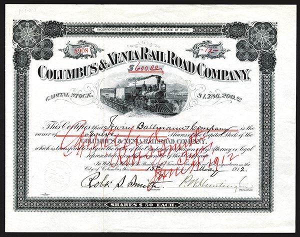 Ohio, 12 Shares, I/C, Locomotive L-R over bridge, VF.