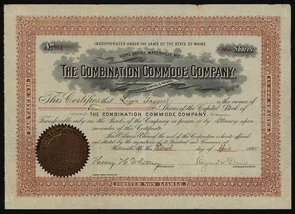 Waterville, New York, 1894, 10 Shs., Clouds behind title, Red frame, gold seal, VF.
