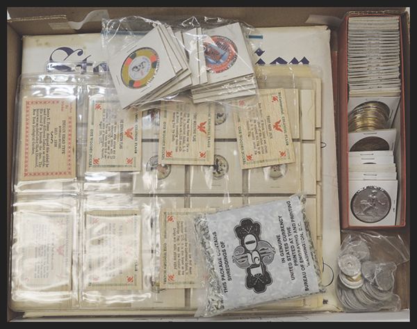 Comic Pinbacks, Presidential Medals and More. Comic Pinback Buttons 1940s(44 different comic characters); Gambling Tokens; Historical Ships Wooden Nickels(24 different); Hassan Cigarette Cards(30 Different); Advertising Notes(9 mostly modern); Numismatic Convention Medals; States of the Union Collector’s Set in Bronze; Presidential Hall of Fame Set, bronze; Presidential Coins, bronze by Hecker 1940 in the original multicolor card; plus a few surprises. Sold as is. Must be seen.