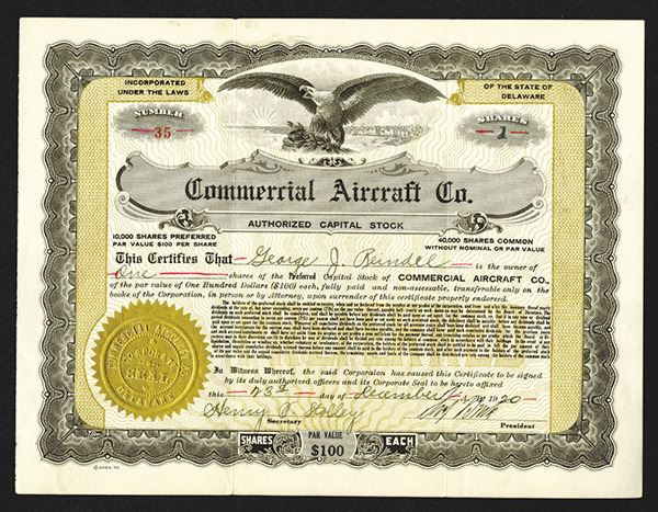 DE. 1 Shrs Stock Certificate. Issued, Uncancelled. GOES two color form. VF+