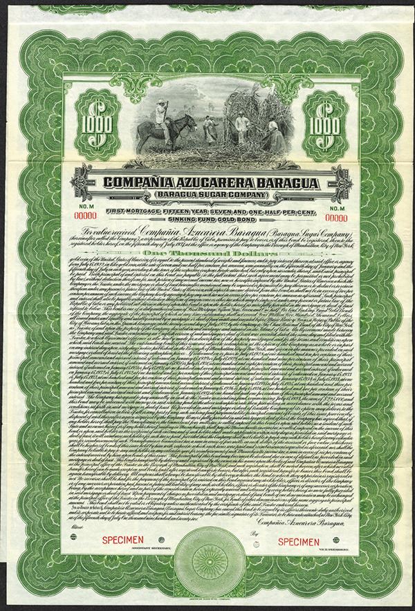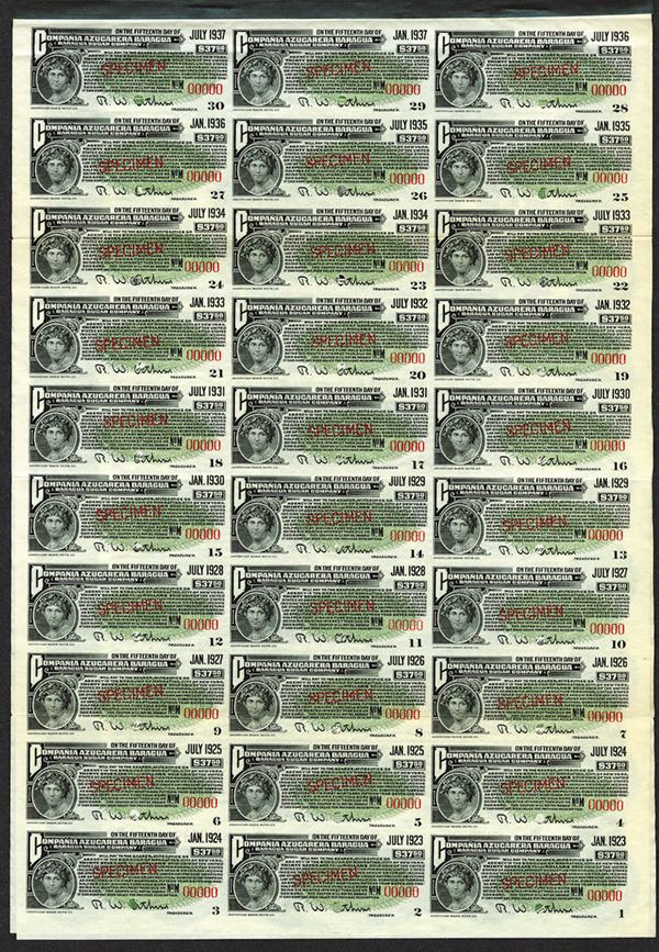 Cuba, 1922, $100, Specimen Gold Bond, Orange Border with Sugar Cane Field/Workers Vignette, Coupons Attached, POC, XF.