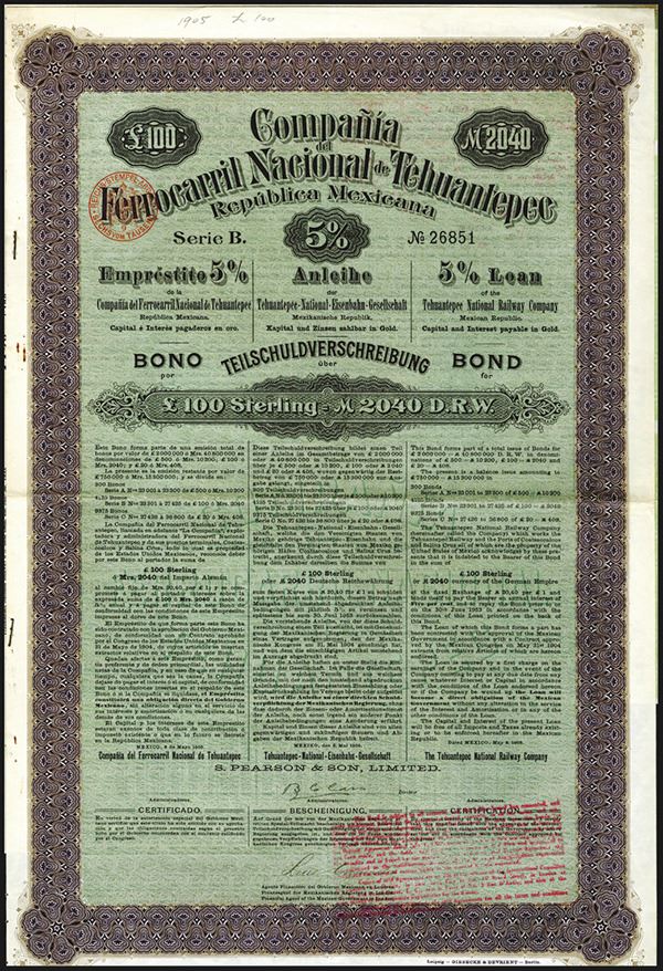 Lot of 2 bonds, Mexico. 1905, 5% Gold Bond, Series B and Series C. In English, German and Spanish, coupons attached. Fine to VF condition.